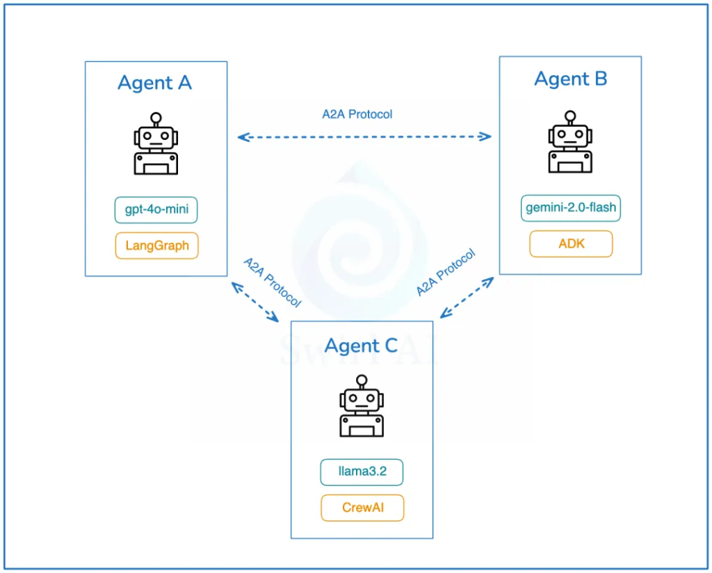 A2A is an open protocol that provides a standardized way for AI agents to collaborate, regardless of the underlying development framework or vendor.