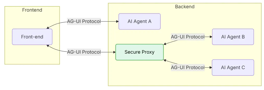 • AI Agent A: An agent that the front-end can connect to directly, without going through a proxy.